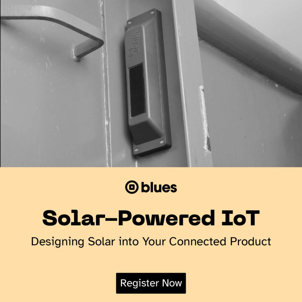 In this webinar, Blues and Voltaic Systems walk through the end-to-end design of a solar-powered, low-power device: how to build an accurate energy budget, right-size your solar array and battery, and configure Blues Notecard to transmit data over cellular while sipping milliamps.