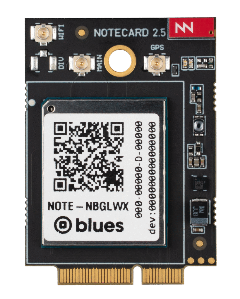- Notecard: Plug-and-play wireless connectivity module. Utilize cellular, WiFi, satellite, or LoRa technologies.
